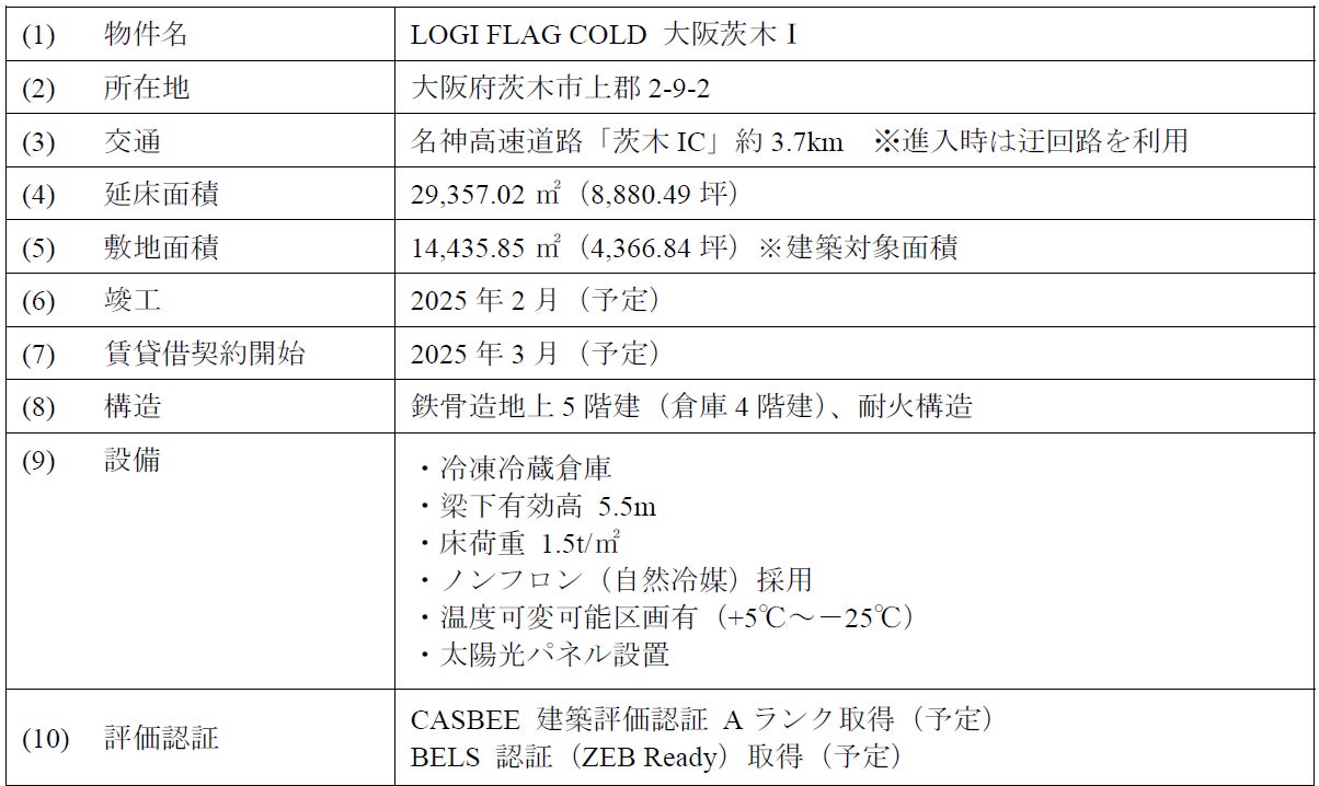 賃貸型冷凍冷蔵倉庫『LOGI FLAG COLD 大阪茨木Ⅰ』のテナント決定に関するお知らせ