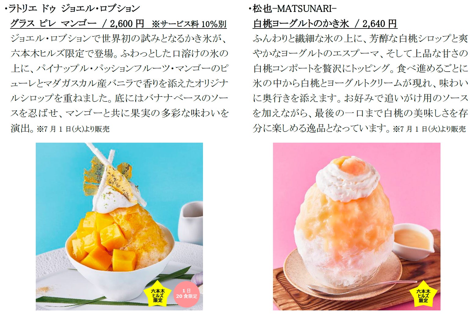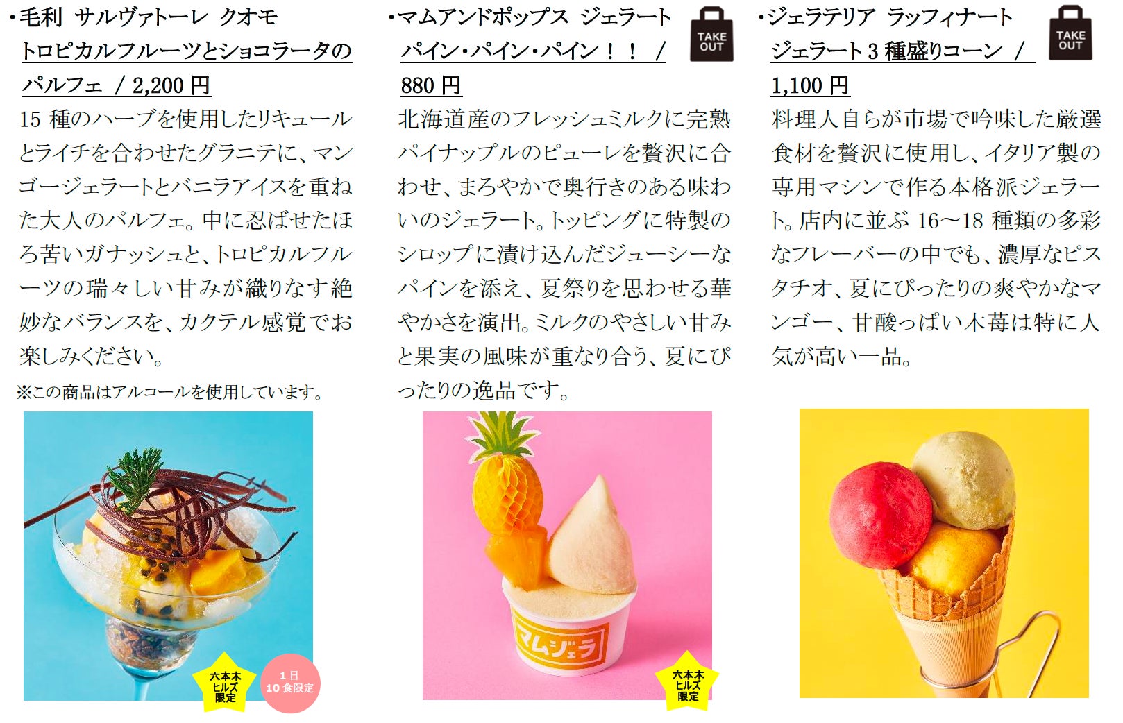 六本木ヒルズの人気店舗が提供する、この夏を彩るアイスとともに、素敵な夏のひとときをお過ごしください。