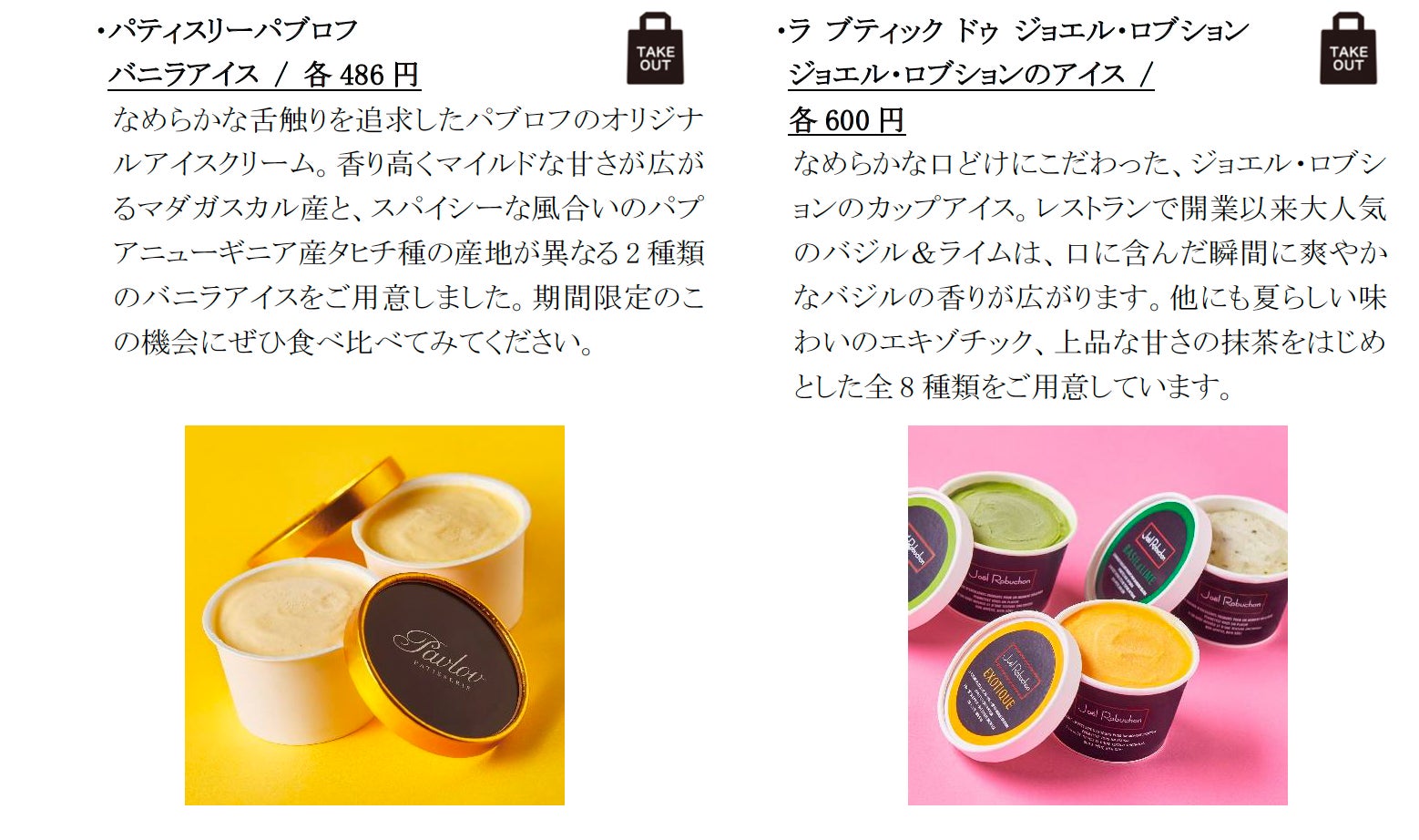 ■自宅でも楽しめるテイクアウト可能なアイス
