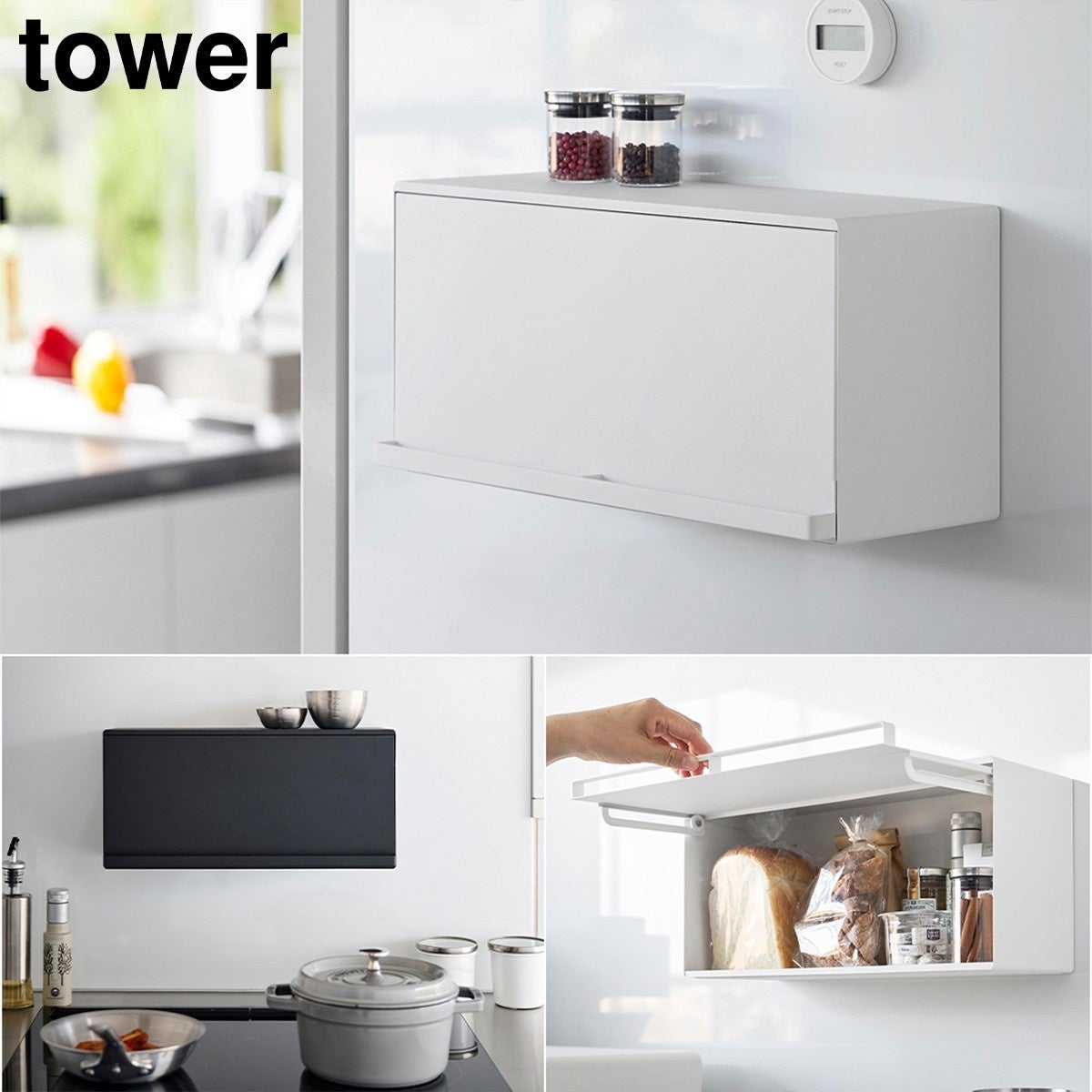 パンや調味料をすっきり収納でき、キッチンパネルやコンロ周り、冷蔵庫などの手が届きやすい場所に設置できます。