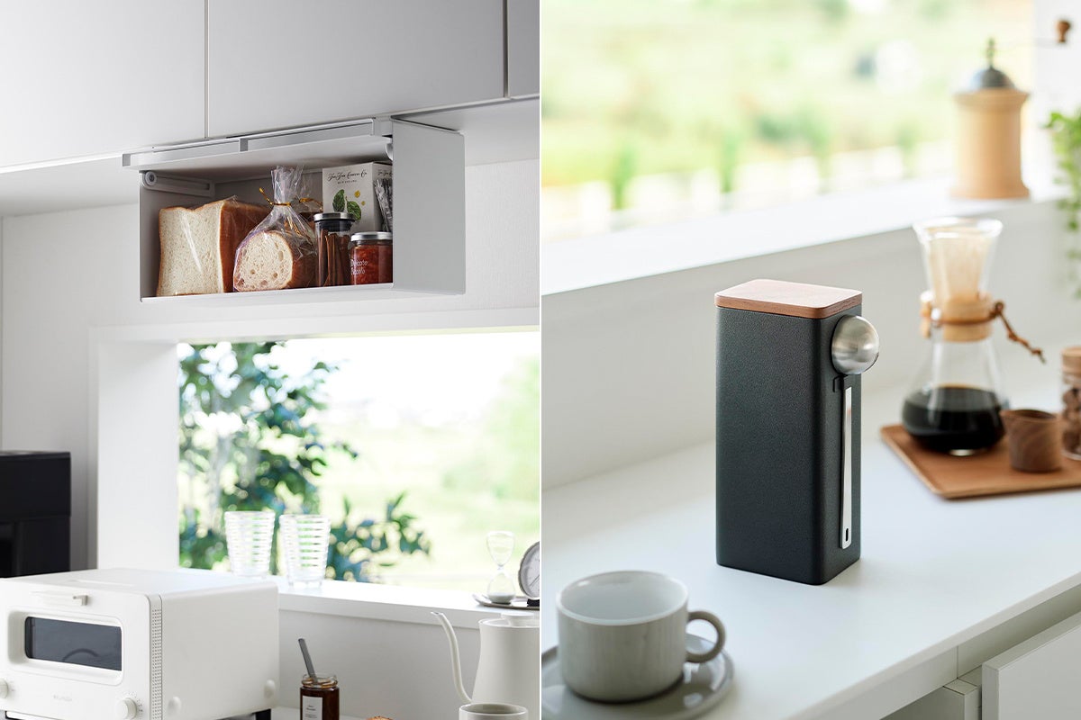 【山崎実業 新商品のお知らせ】 戸棚下に浮かせて収納できるブレッドケースや、スプーン付きのコーヒー豆収納ケースなど、新商品が発売になりました。