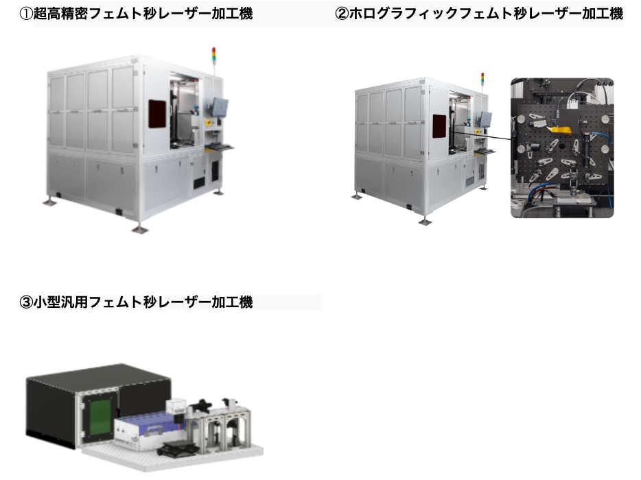 ①フェムト秒レーザー加工機:高性能・先端分野の半導体製造や超微細加工を牽引