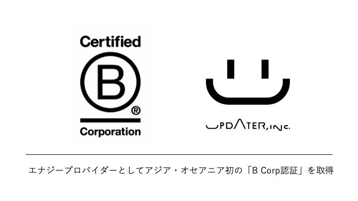 UPDATER、エナジープロバイダーとしてアジア・オセアニア初の「B Corp™認証」を取得