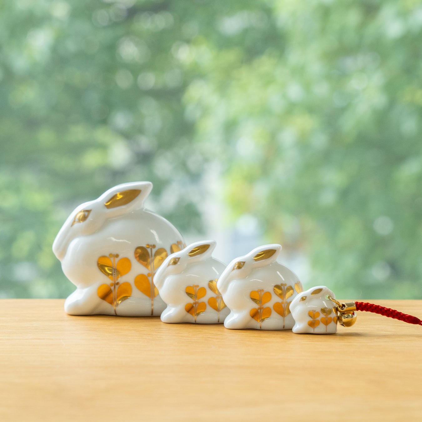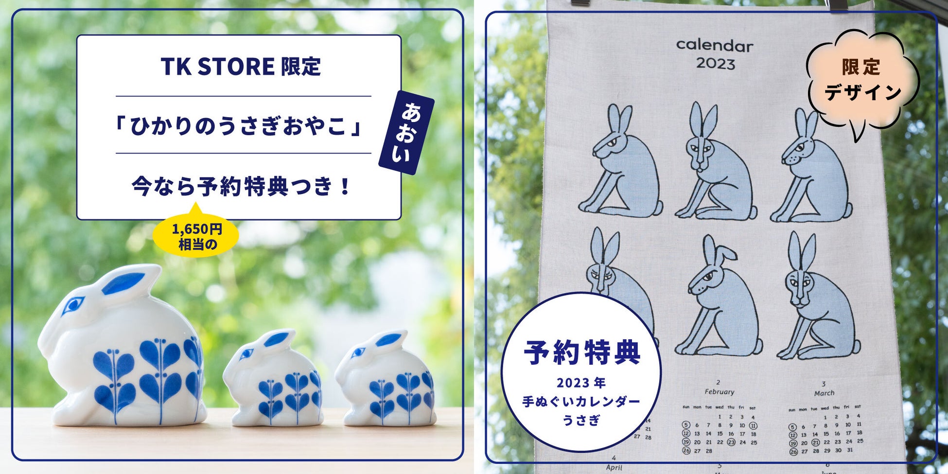 「ひかりのうさぎおやこ(あおい)」には限定版のカレンダー手ぬぐいが、「ひかりのうさぎおやこ(ひかり)」には金の根付けキーホルダーが付いてきます。