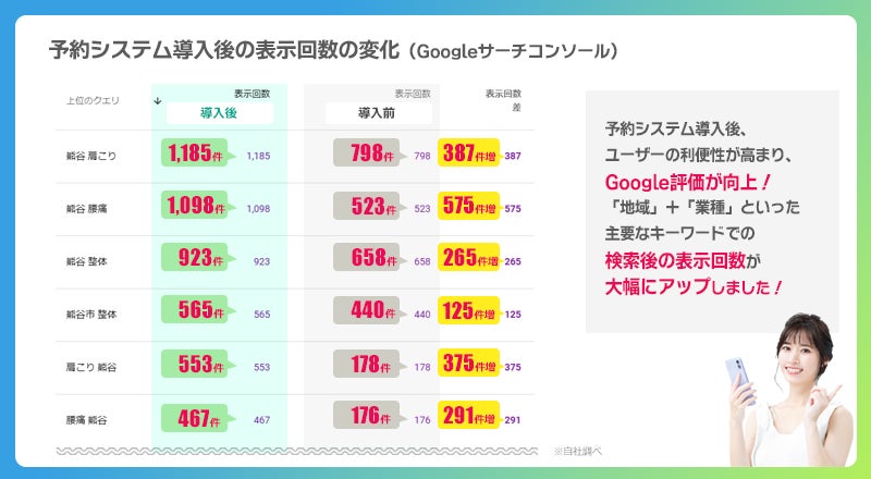 株式会社アシストは、整体院顧客のホームページにおける予約システムの導入効果を調査しました。