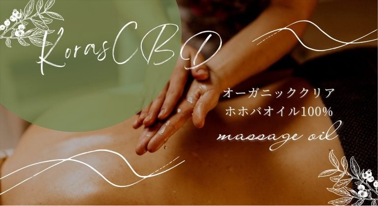 Koras CBD Massage Oilには、オーガニッククリアホホ バオイルが配合されております。ホホバオイルは、肌に浸透しやすい油脂で、肌のうるおい を保つ効果があります。さらに、ホホバオイルには、ビタミンEや必須脂肪酸が含まれています。オーガニックのクリアホホバオイルを使用することで、肌 に優しい成分を配合し、マッサージオイルとしての機能を更に高めます。