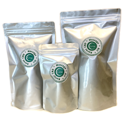 品質維持の為、お届けする際は保管に使いやすい遮光チャックアルミパウチ袋でお届け。