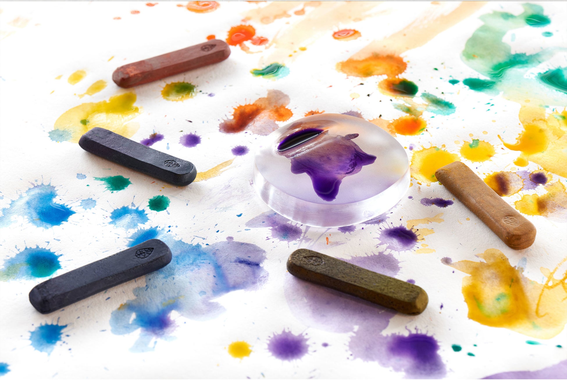 染料インクは水に溶けるため、インクで書いた後に水筆等でぼかしたり、薄く色を引き延ばすなど、表現にお使いいただけます。