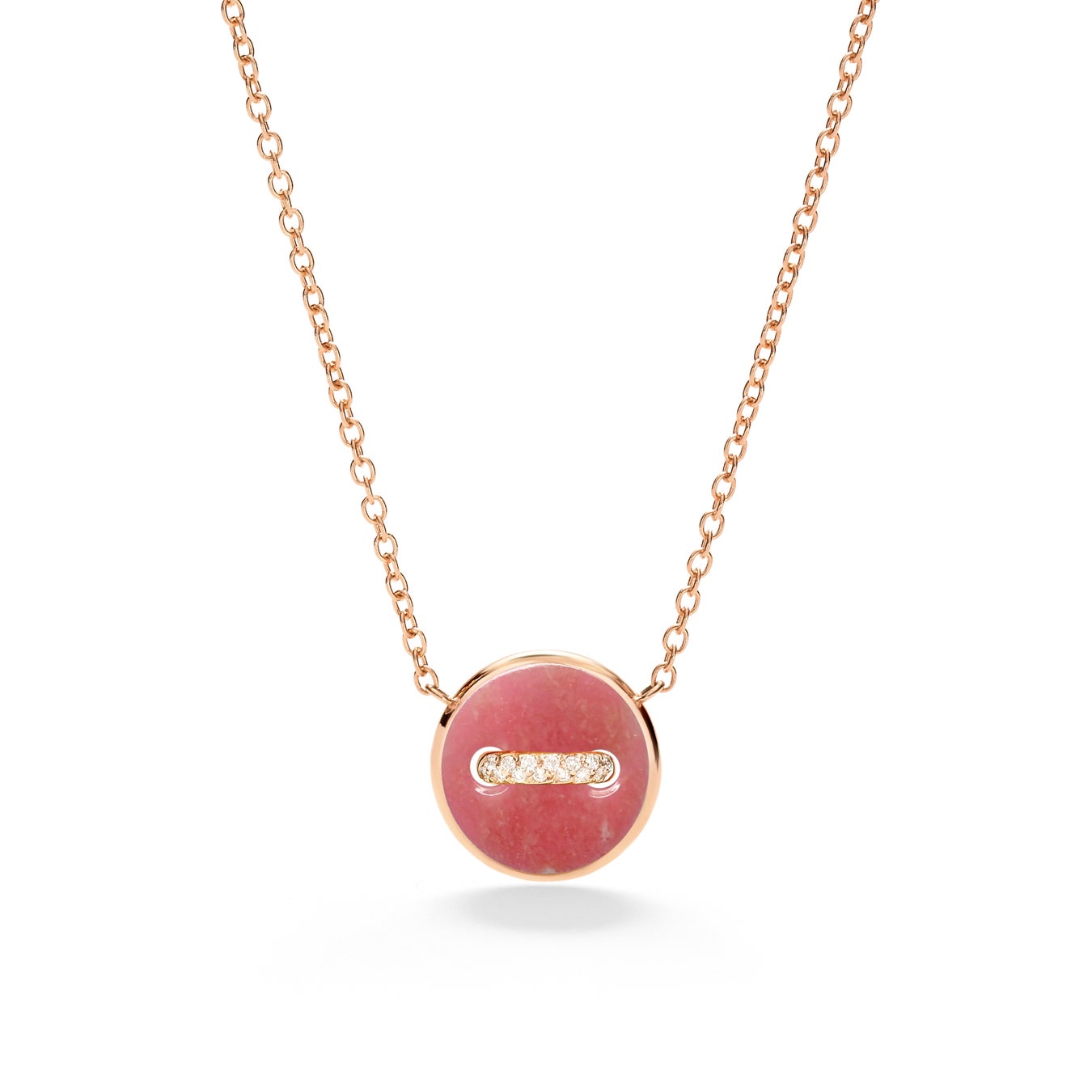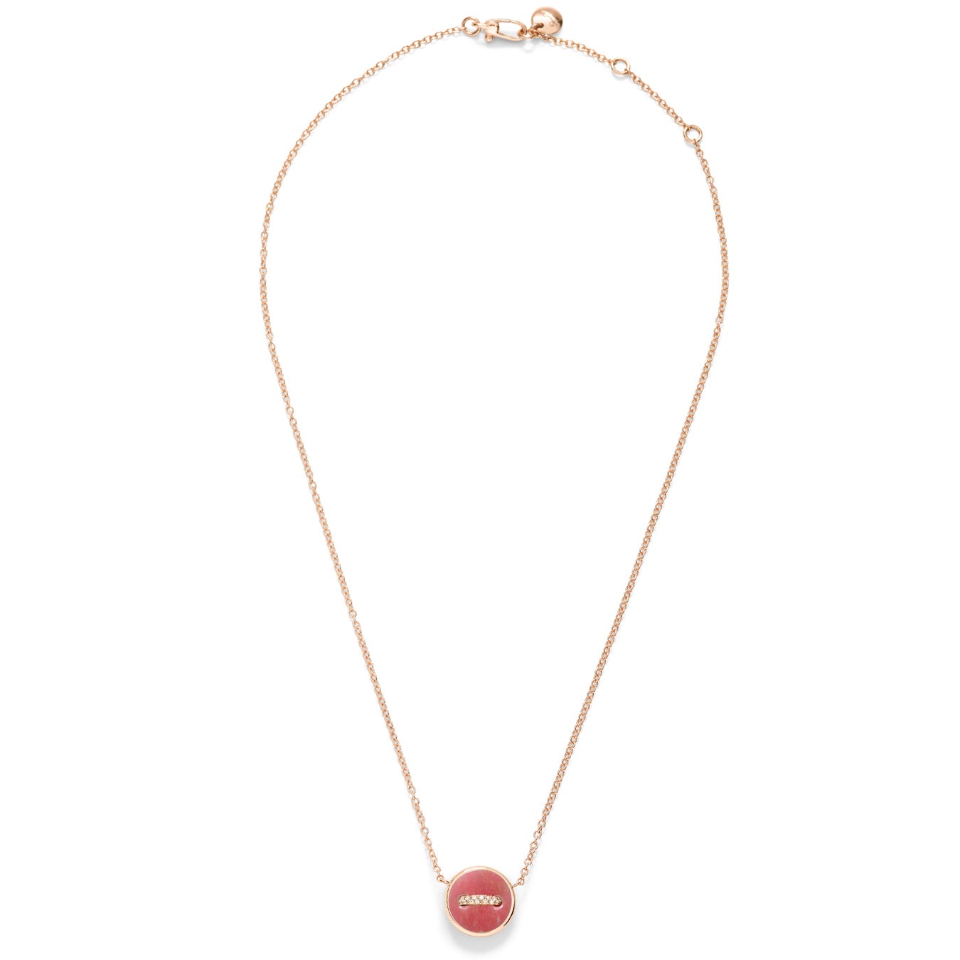 今回の新作「ポムポムドット」ネックレスは、繊細なピンクカラーのチューライトと、反対側には光沢のあるホワイトマザーオブパールがあしらわれたペンダントトップが特徴となっています。ローズゴールドにセッティングされ、ホワイトダイヤモンドが輝くこの作品は、ポメラートの職人技術と革新的なデザインアプローチを体現しています。