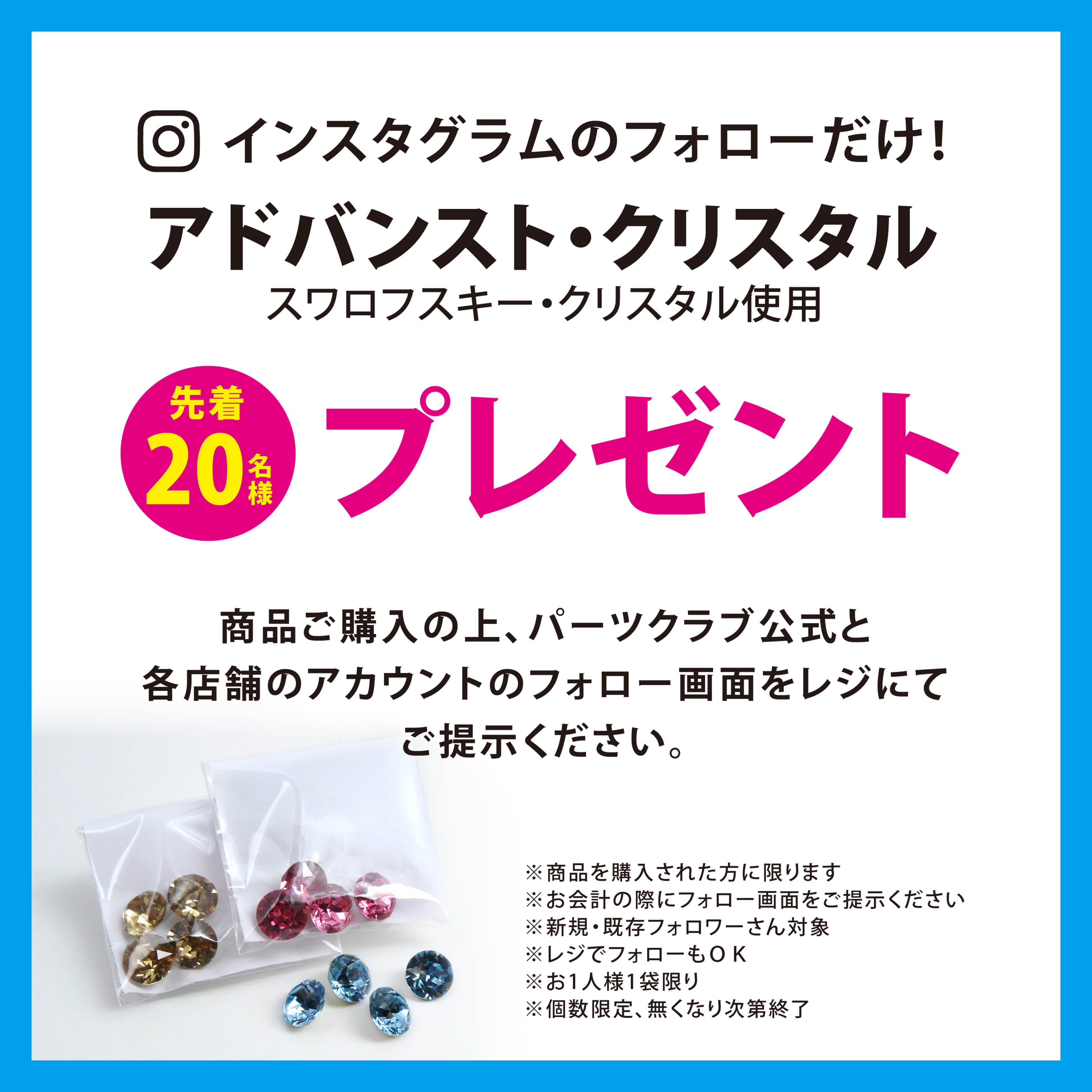 商品ご購入の上、レジにてパーツクラブ公式と各店舗のアカウントのフォロー画面をご提示ください。