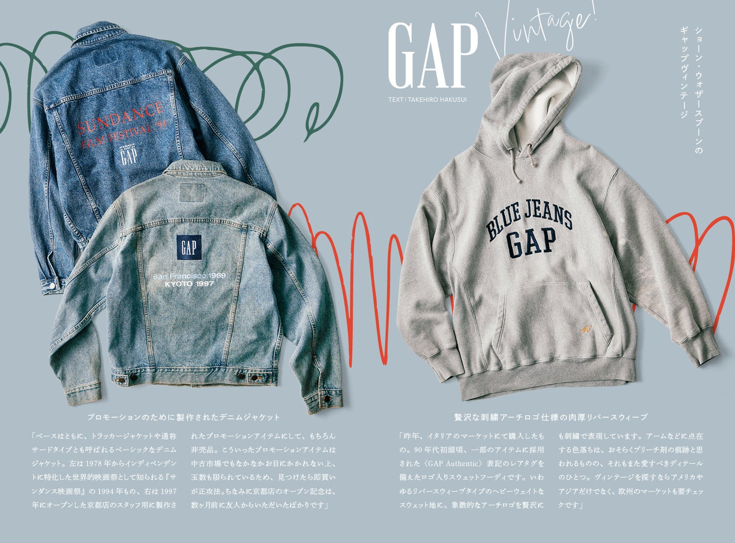 2025年4月に新宿フラッグスでも開催されたイベント「GAP Vintage Drop2」等、GAP Vintageコレクションのフロントマンとして活躍するショーン・ウォザースプーン氏のオールドギャップコレクションを紹介します。