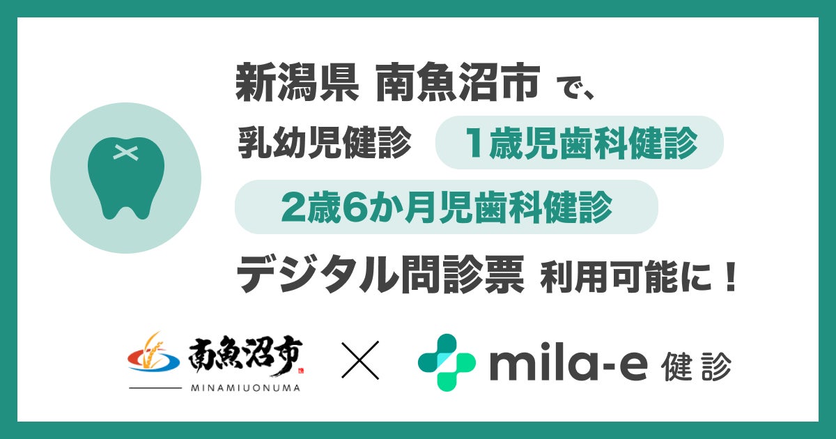 自治体向けサービスを開発する株式会社ミラボ(本社:東京都千代田区、代表取締役:谷川一也、以下「ミラボ」)が、新潟県 南魚沼市で導入している乳幼児健診 デジタル問診票サービス「mila-e(ミライー) 健診」において、2026年 2月より対象となる健診の範囲を拡大し、1歳児歯科健診・2歳6か月児歯科健診でデジタル問診票の運用を開始しました。