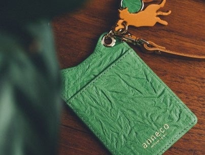 “ぽってり熟れた果実のような革小物”をコンセプトとしたお財布とキーケースを販売します。メインの革は、工場で眠っているストックレザーを使用しており、サステナブルな商品です。