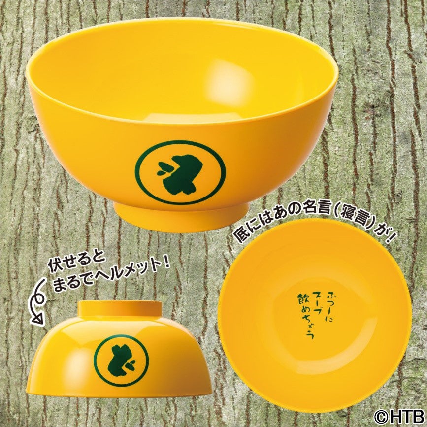 番組内で出演陣がかぶっていた〇どヘルメット風の「丼」!光沢のある黄色に、あえて逆さまに入った〇どロゴは思わずかぶってしまいそうになるほどヘルメットそっくり!自分だけの命のスープを作ってこの丼に盛ればいつでも「ヘルメットラーメン」が食べられます。