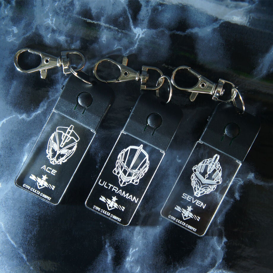 ULTRAMAN スペシウムアクリルキーホルダー(ULTRAMAN Ver.」・「SEVEN Ver.」・「ACE Ver.」)/各3,300円(税込)
