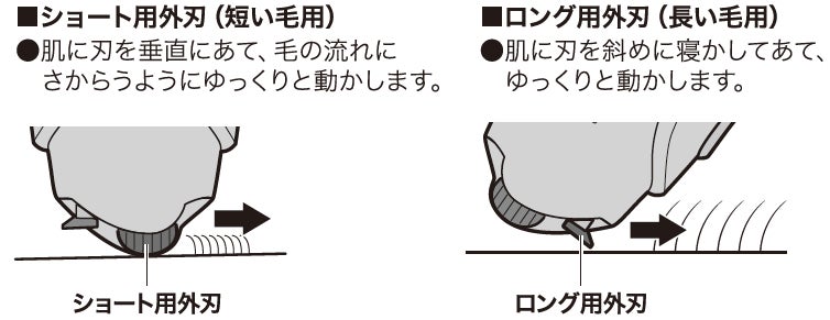 本体に「短い毛用」と「長い毛用」の外刃がセットされているので、アタッチメントの付け替えは不要。