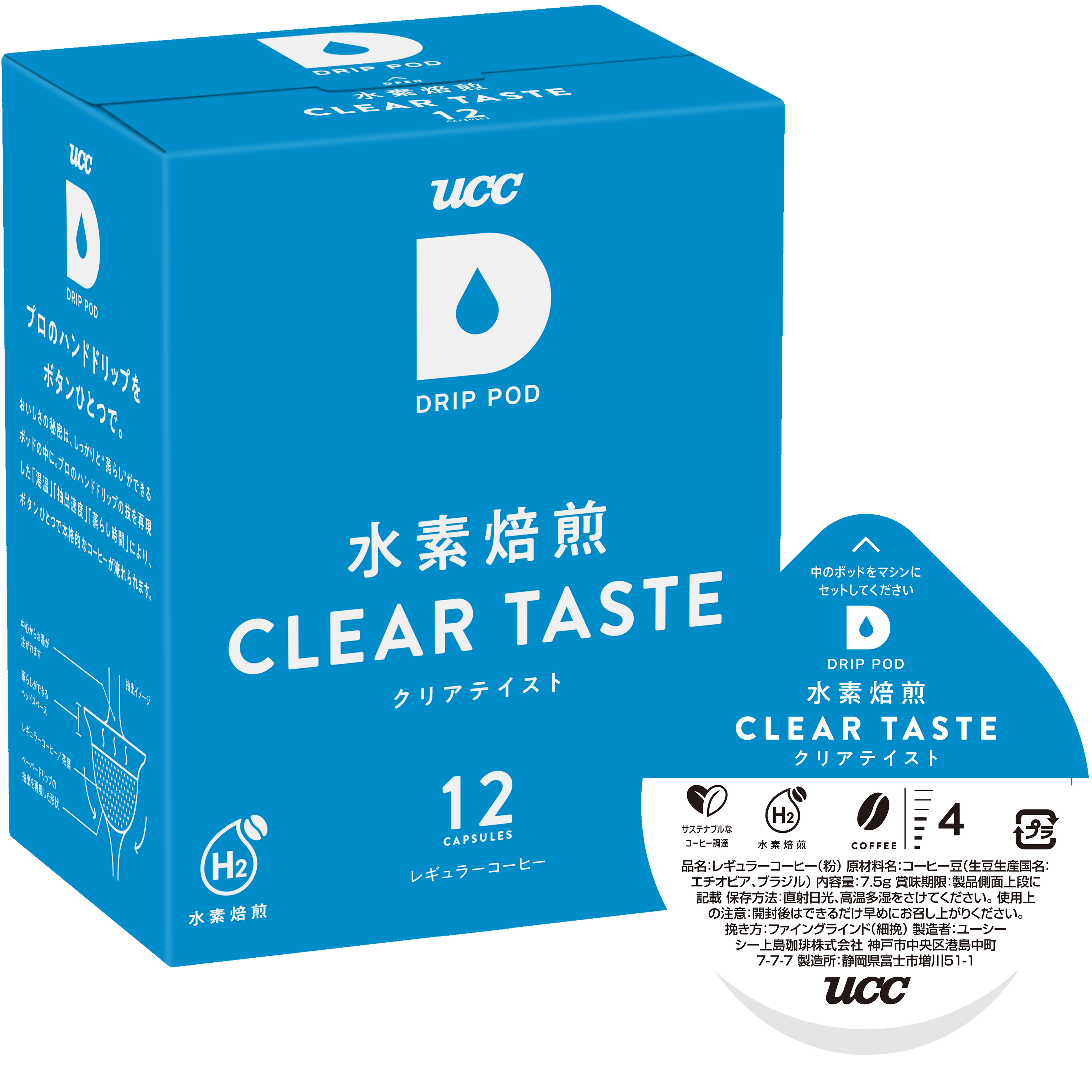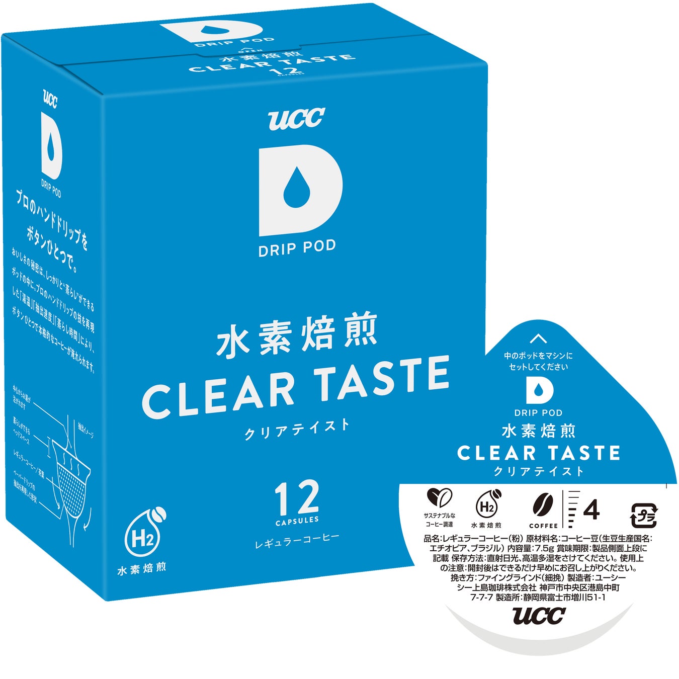 UCCのカプセル式ドリップコーヒーシステム「ドリップポッド」業務用として初 水素焙煎コーヒーを採用したカプセルを展開 UCC DRIP POD『水素焙煎 クリアテイスト12P』