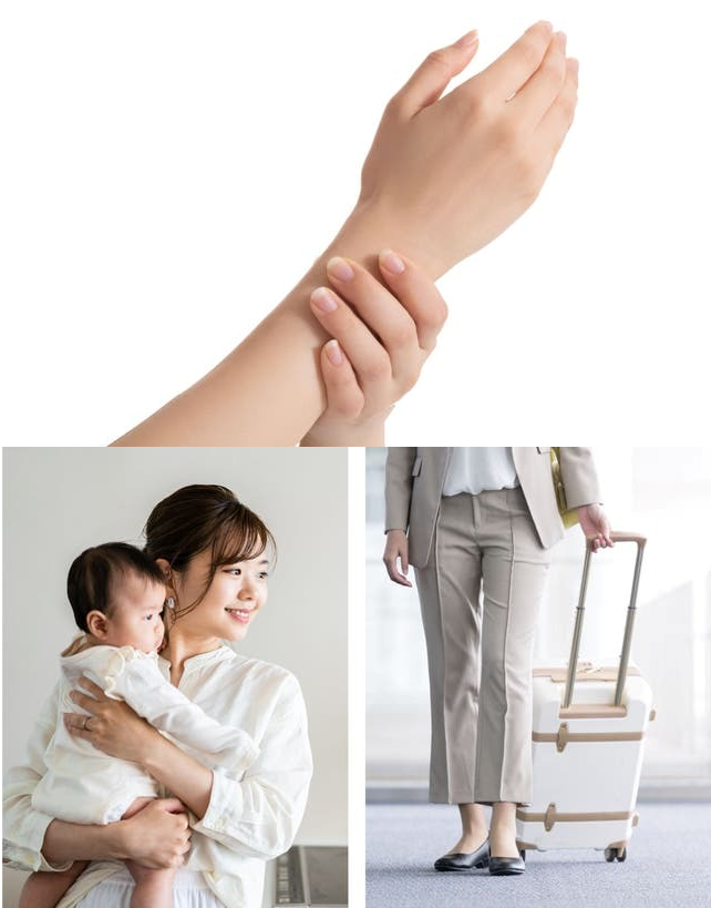 日常生活の中で、重いものを持ったり(子供の抱っこなど)、同じ動作を何度も行ったり(反復動作)、スポーツ中の負荷など、手首の違和感となる原因が隠れています。