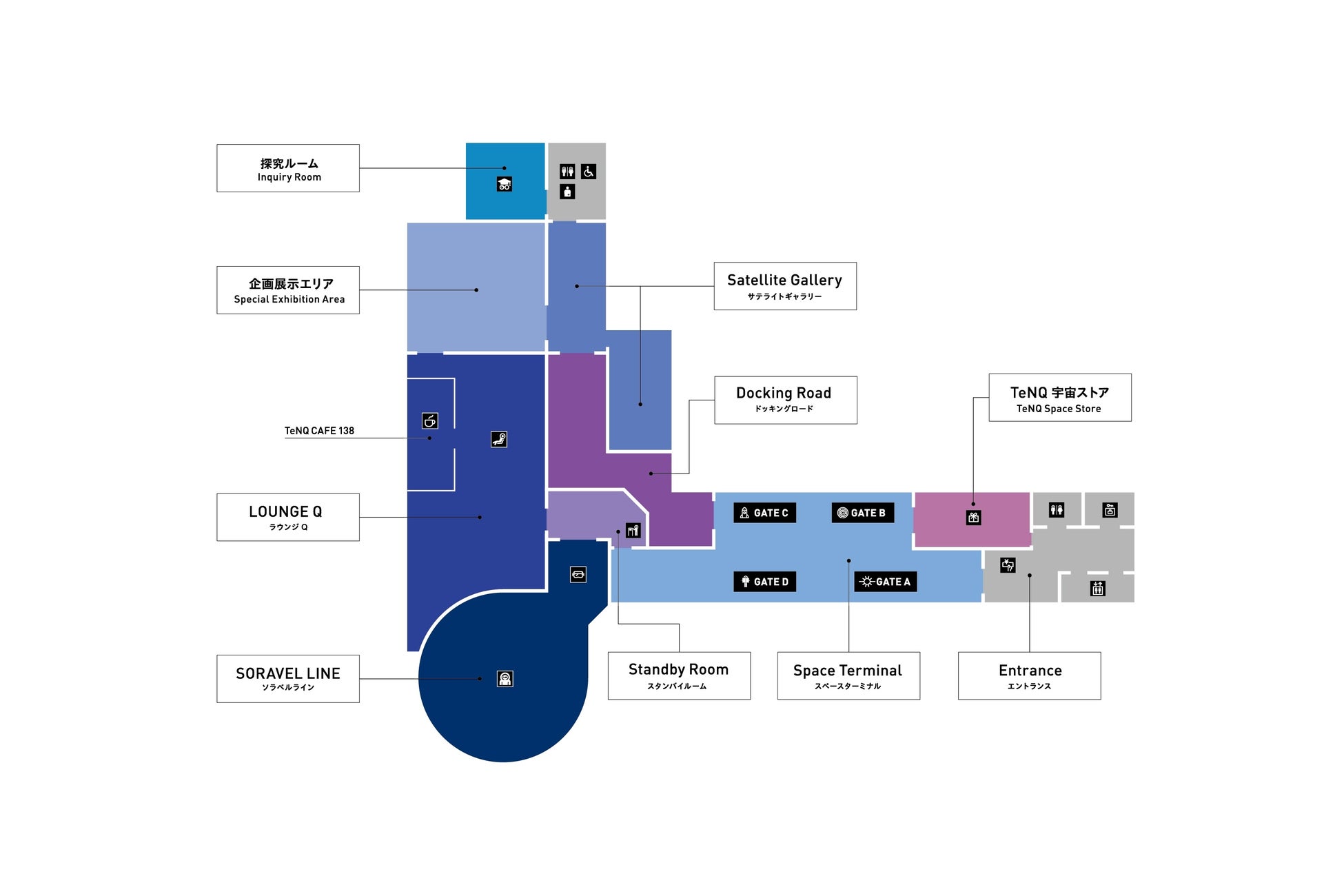 『Space Travelium TeNQ』では、たくさんの人や物が集まり交流する場所である宇宙港をモチーフとした空間の中に、知的好奇心をくすぐる展示やVR、アートや学びを楽しめるギャラリーや教室、カフェやショップなど、宇宙とつながる様々な体験を用意。更にパワーアップした宇宙のエンターテインメントを提供します。