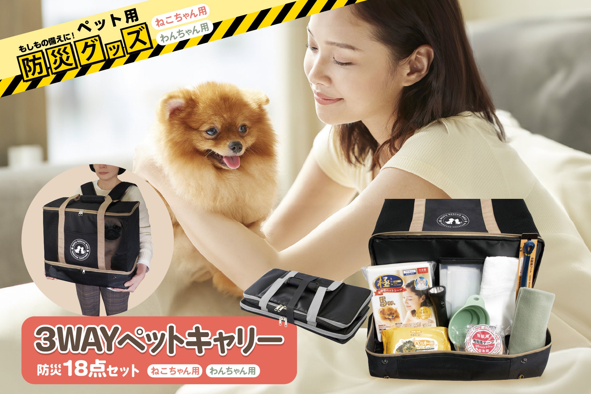 #防災意識を育てる日 「わんちゃん/ねこちゃん用」の2タイプがラインナップ。パパッと持ち出せる「防災3WAYペットキャリー」登場!