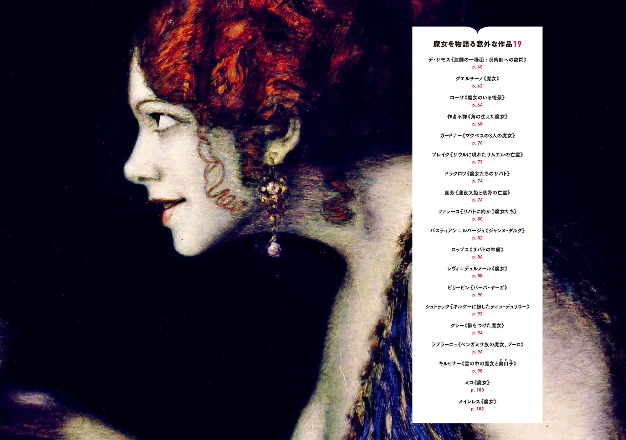 美術の中の魔女たち/魔女狩りの地理的分布/魔女のアトリビュート/取り巻きの動物/魔女を物語る重要作品18/魔女を物語る意外な作品19/作品一覧