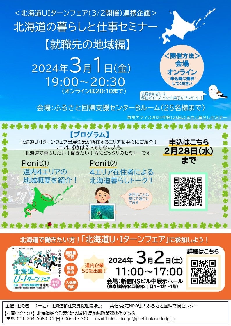 「北海道の暮らしと仕事セミナー【就職先の地域編】」の開催について