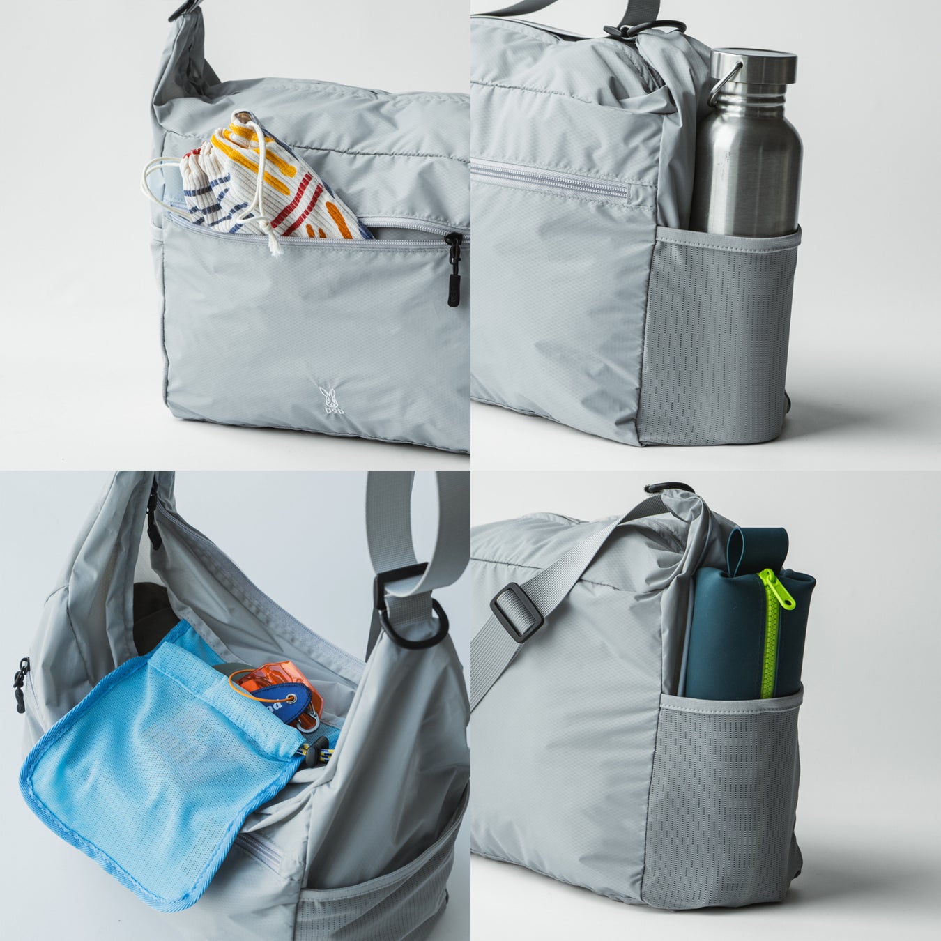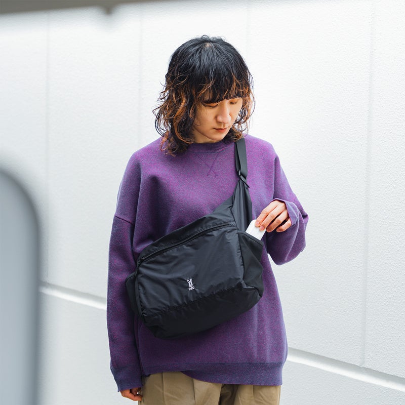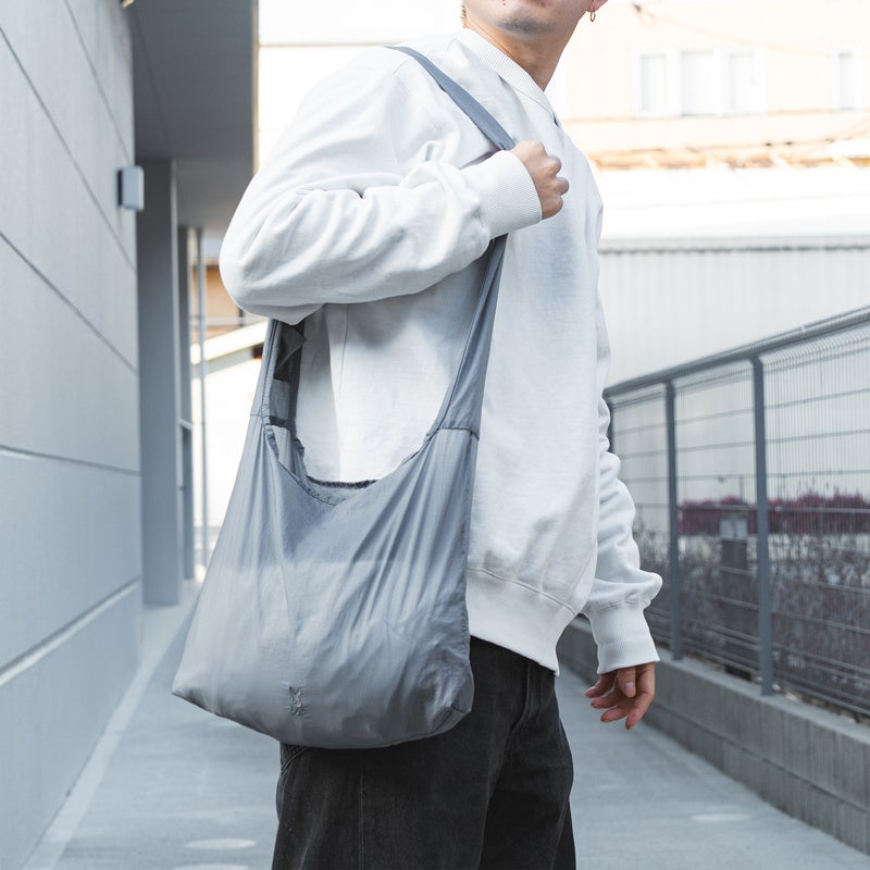 ウルトラライト素材を駆使した約21gのコンパクトショルダーバッグ。手のひらにすっぽり収まるサイズ感ながら、展開すれば頼れる容量8Lに大変身。出し入れのしやすさを重視しシンプルなデザインに仕上げました。 撥水加工ナイロンを採用し、洗濯機での丸洗いも可能。日常のどんなシーンでも「こっそり」忍ばせておける頼もしい変身バッグです。