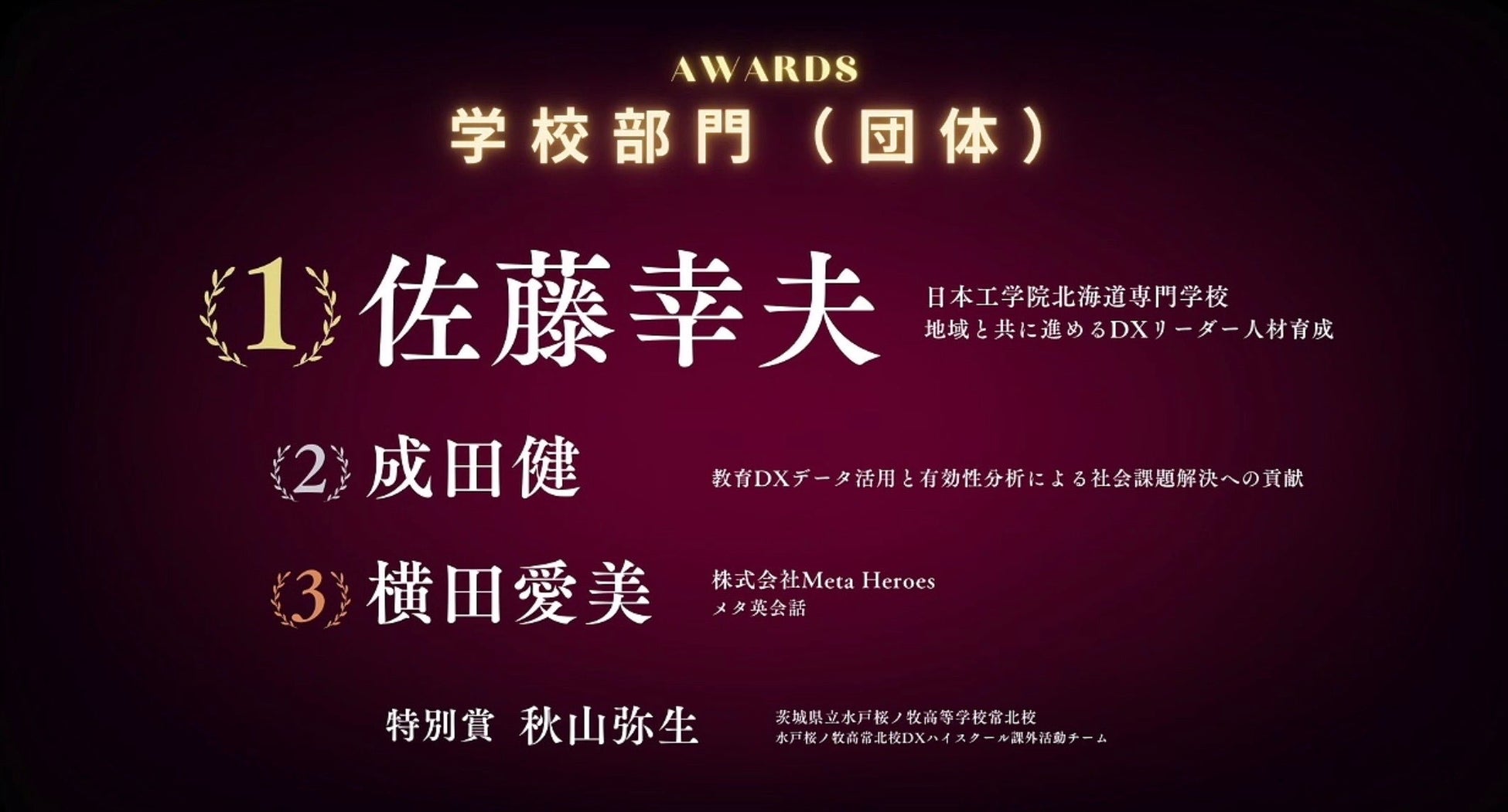 アワードでは、実践的なDXの取り組みや、地域・教育・暮らしに対して新しい価値を生み出す事例が紹介されており、応募者の活動を広く社会に発信する場となっています。