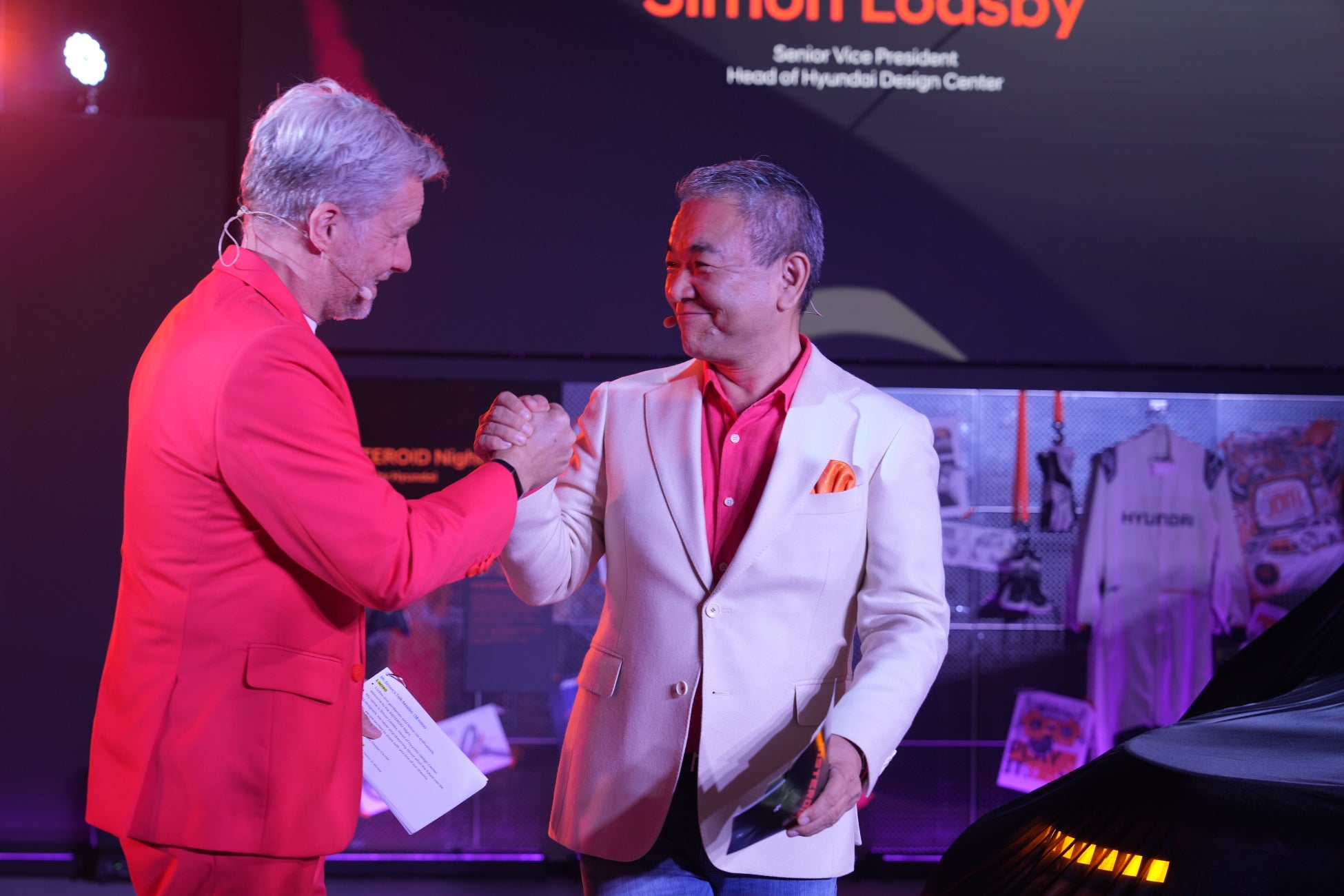 続いて登壇したのは、Hyundai Motor Group Hyundai Design Center長 Simon Loasby(サイモン・ロスビー)氏。INSTEROIDの開発背景を紹介。INSTEROIDが「INSTER」をベースとしながらも、“What if(もしも?)“という発想から生まれた、遊び心と挑戦を詰め込んだ想像力のデザインコンセプトカーであると説明しました。