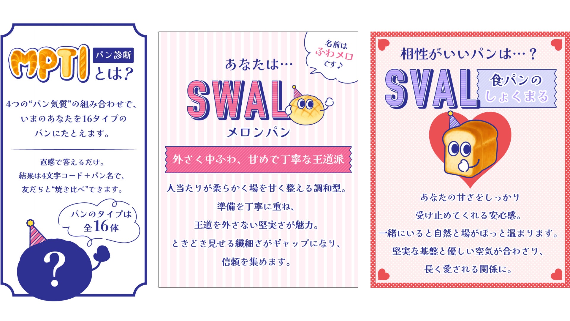 『MPTI(My Pan Type Indicator)診断』は、人気の「MBTI診断」をパンの個性に置き換えた社内発信プロジェクトです。