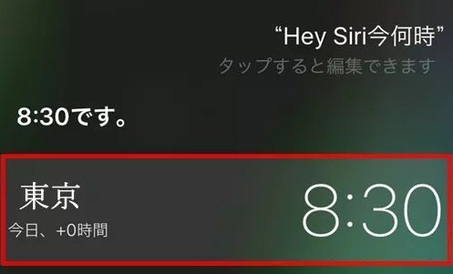 Step1:ロックされているiPhoneに、「Hey Siri今何時」と尋ねます。時間が表示されるのでタップします。