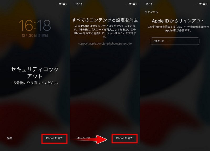 裏ワザ2:「iPhoneを消去」でパスワードを解除する