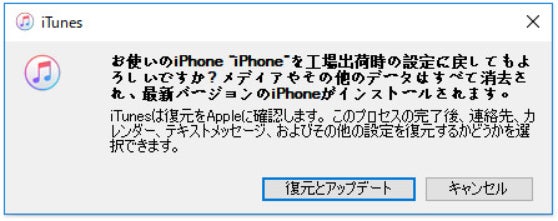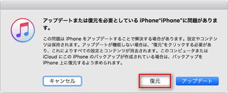 Step3:iTunesにメッセージが表示されますので「復元」を選択します。