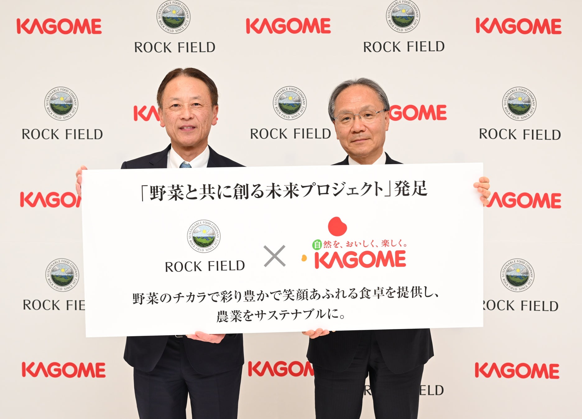 株式会社ロック・フィールド(以下ロック・フィールド)とカゴメ株式会社(以下カゴメ)は2025年3月11日、業務提携契約を締結いたしました。両社は共同で、新たに『野菜と共に創る未来プロジェクト』を立ち上げ、「健康寿命の延伸」「農業振興」「持続可能な地球環境」といった社会的価値と、双方の経済的価値を同時に追求することを通じて、野菜のチカラで彩り豊かで笑顔あふれる食卓を提供するとともに、サステナブルな農業を目指してまいります。