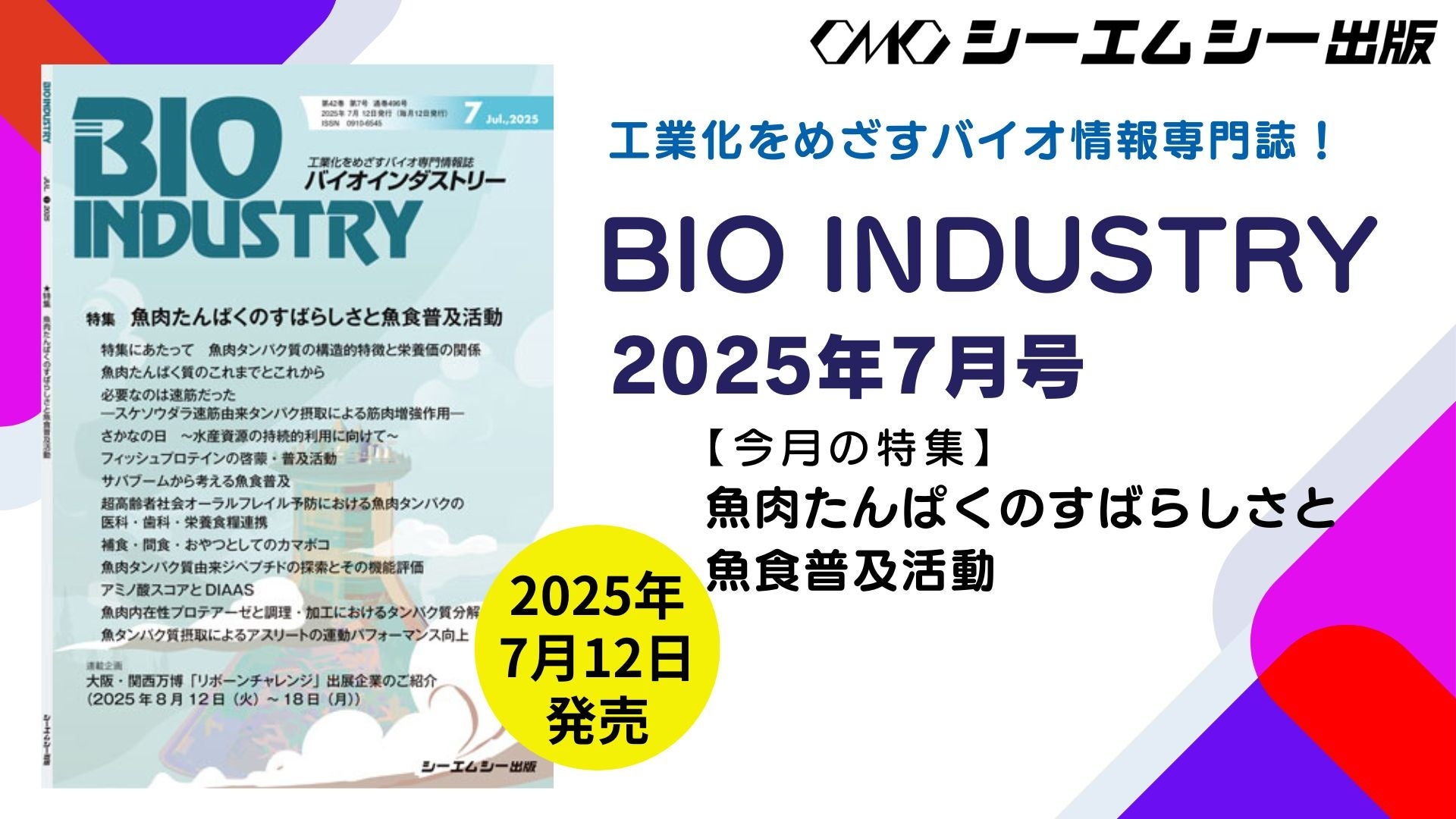 毎月12日発売!【月刊BIOINDUSTRY 2025年7月号 特集:魚肉たんぱくのすばらしさと魚食普及活動】工業化を目指すバイオ専門情報誌のご案内