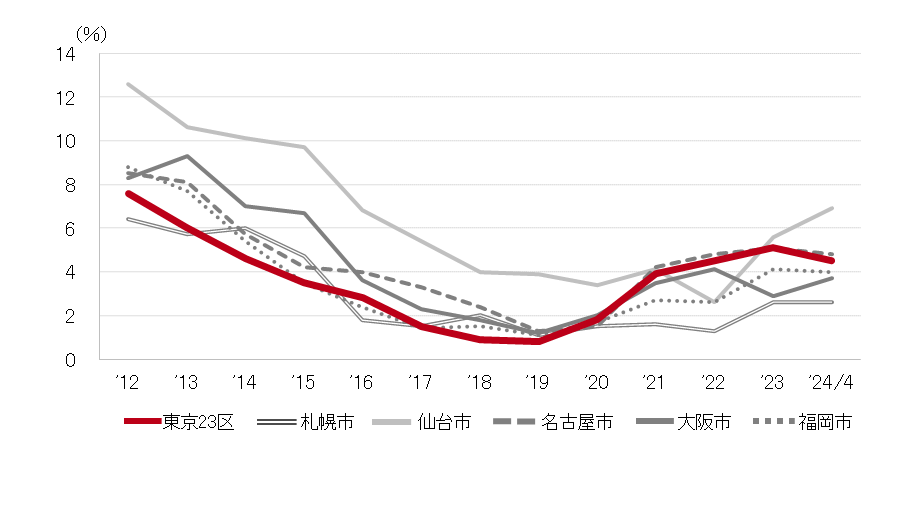 <空室率の推移(6大都市 大規模ビル)>