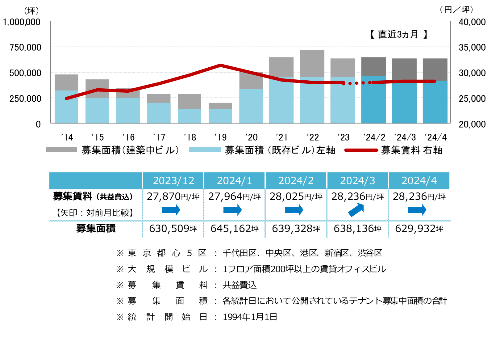 東京都心5区 大規模ビル 募集賃料&募集面積