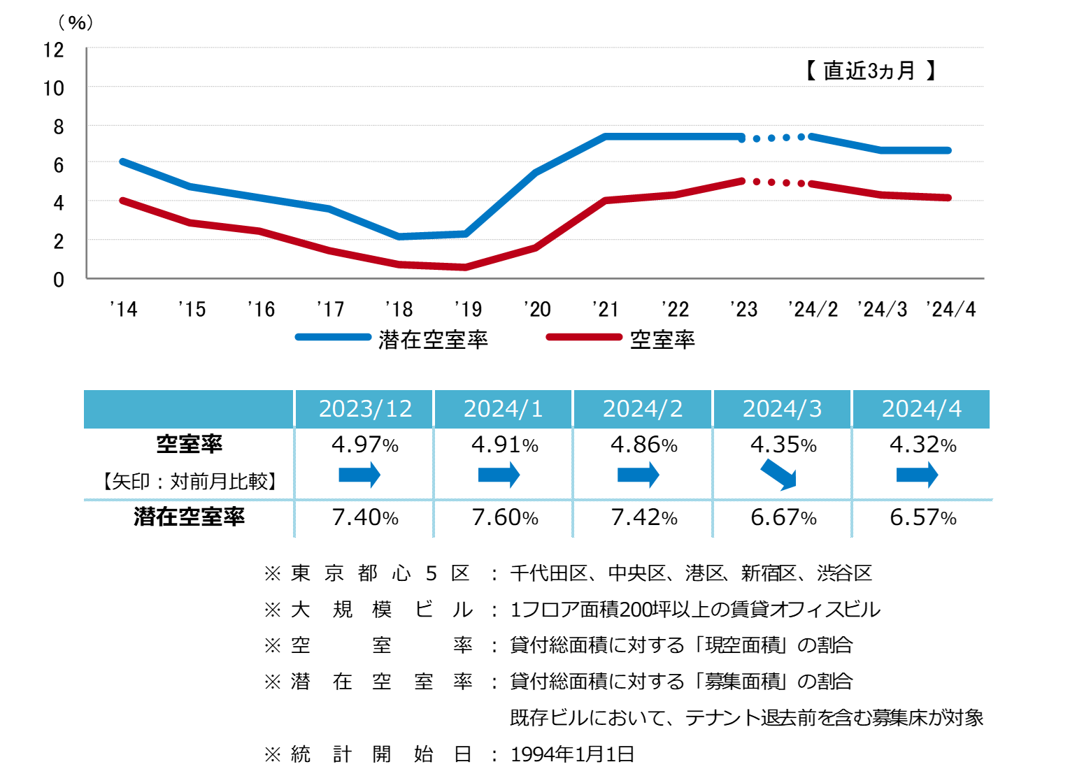 東京都心5区 大規模ビル 空室率&潜在空室率