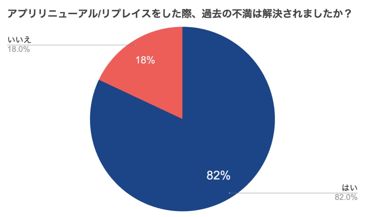 リニューアルやリプレイスを行った結果8割以上のユーザーが不満点を解消できたと回答しており、これが課題解決に繋がっていることが明らかとなりました。