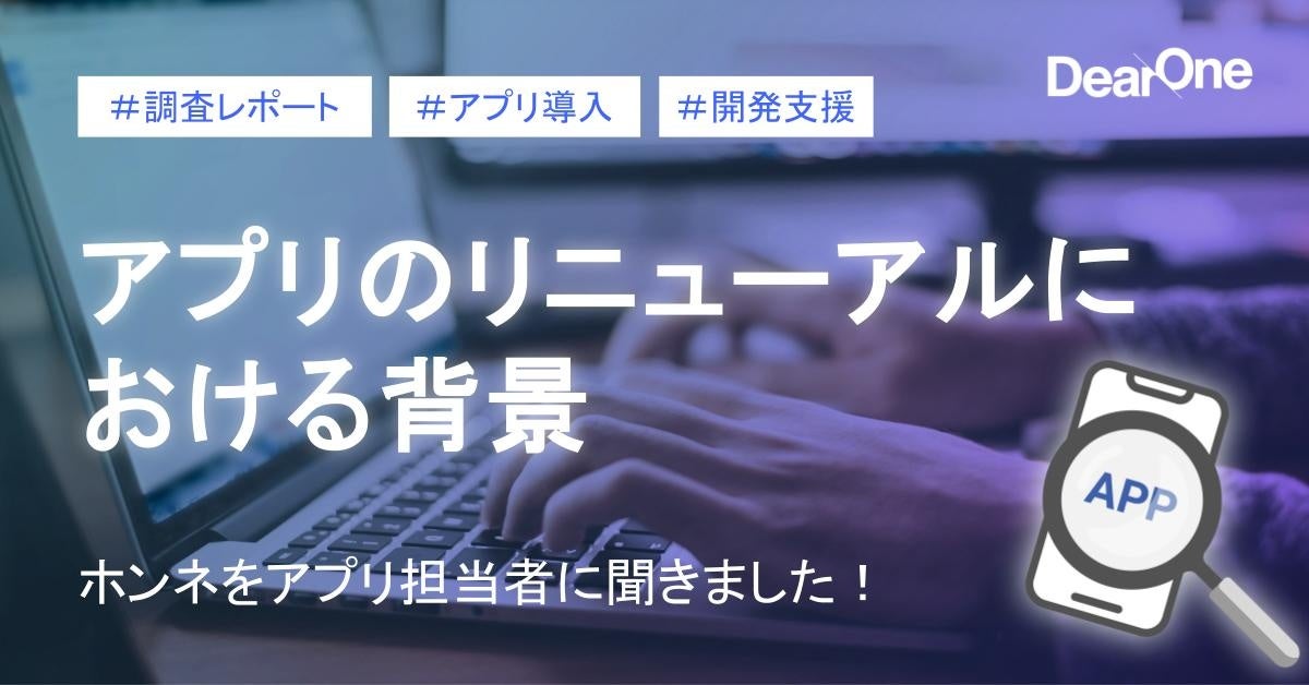 エンタープライズ企業を中心に200以上のアプリ開発実績をもつDearOneは、アプリのリニューアルやリプレイスについてご相談を受けることも多く、その中で、「なぜアプリをリニューアルするのか」という理由に、一定の傾向が見られることが分かりました。