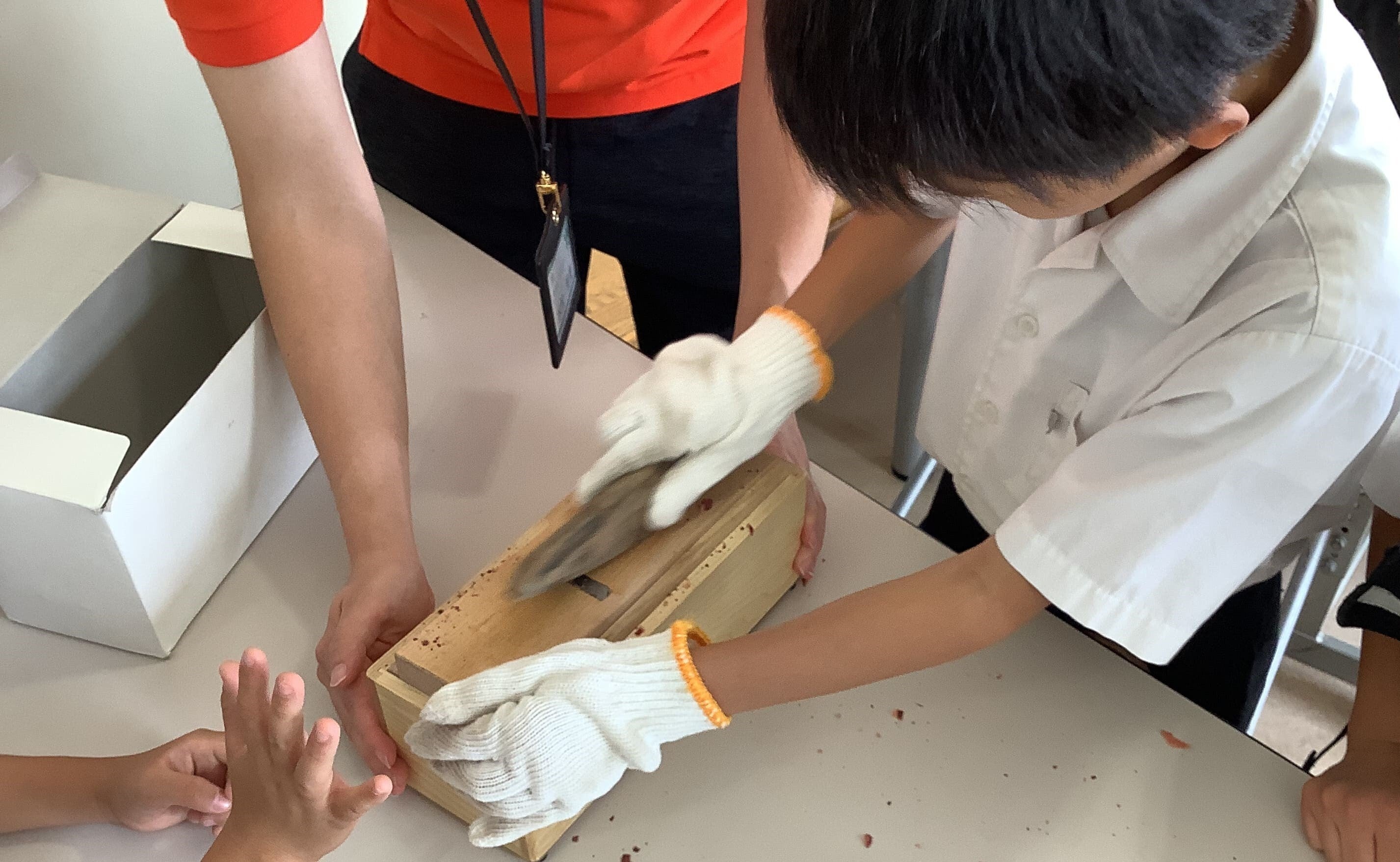 かつお節の香りや堅さ、出来るまでの工程を知り、みなさん驚きの表情を浮かべていました。また、授業の後半ではかつお節の削り体験を実施。堅さに苦戦しながらも一生懸命かつお節を削る子どもたちの様子が見受けられました。