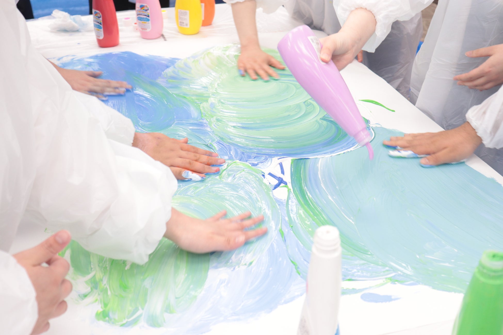 2015年に発売した、手や指で直接触って感じたままに描くことができるフィンガーペイント用絵の具。直接手に触れるものだからこそ、安全性の高い原材料にこだわり、EUのフィンガーペイント安全性規格EN71-7基準に適合した配合にしています。小さなお子さまにも安心してお使いいただける絵の具です。ぽってりとした軽い感触で気持ちよく触れていくうちに、何かの拍子に作品や表現が生まれ、日常のルールからはみだして、心を開放させてくれます。最近では、お子さまと一緒に大人も参加して、全身絵の具まみれで楽しむアートイベント「Play Art BnA」や「はちゃめちゃ遊び」、プロによる出前授業を届ける教育プログラム「TERAKOYA Program」への協賛など、様々なワークショップ活動に使用されています。