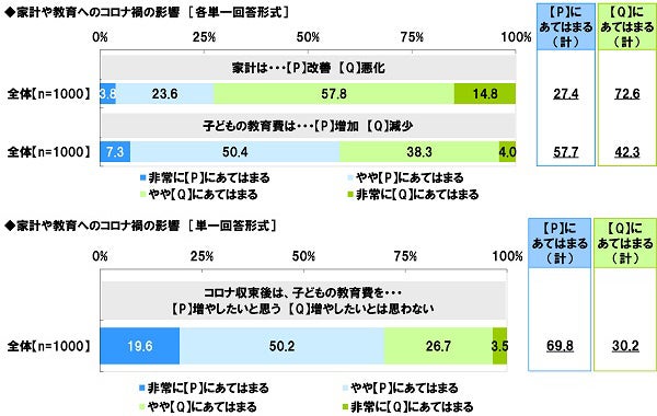 ・「コロナ収束後は、子どもの教育費を増やしたい」親の7割が希望