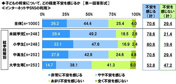 ◆「子どものインターネット・SNS利用に不安を感じる」親の7割、小学生の親では8割