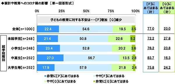 ◆「コロナ禍で子どもの教育に対する不安が増加した」親の約8割、中高生の親では8割半