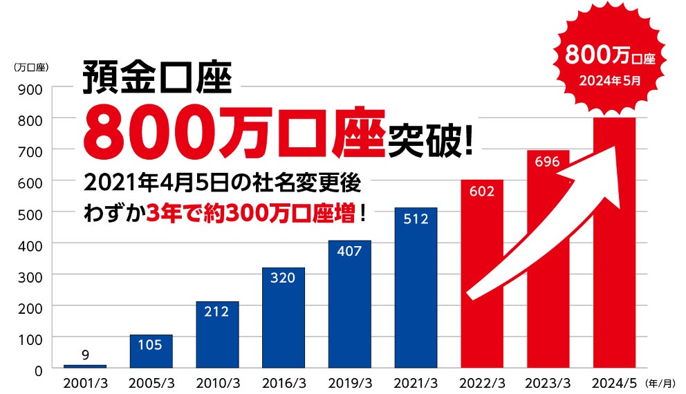 ~口座開設申込「最短1分」や普通預金金利「0.03%」などがプラスに。3年で約300万口座増~