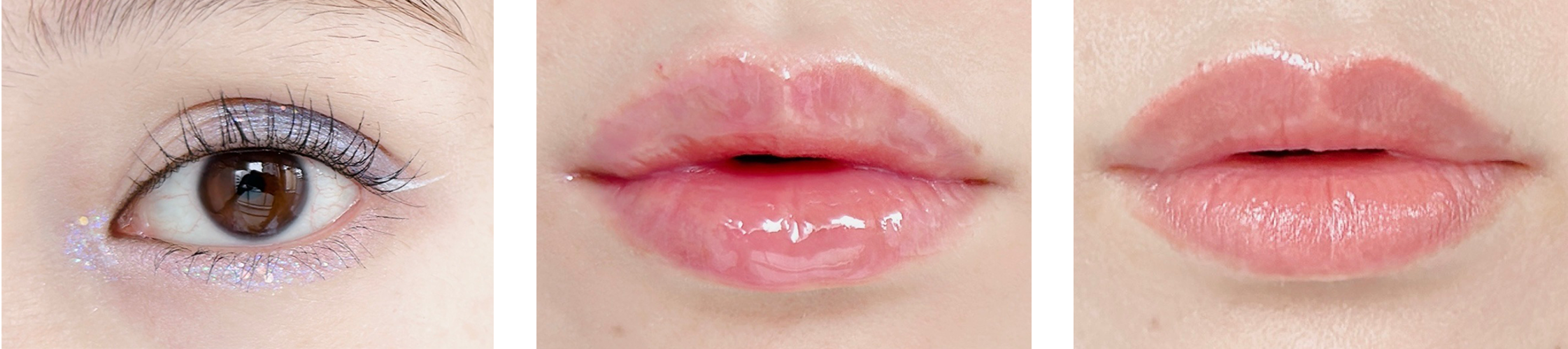 マット系のピンクリップに透明のグロスが「くらげメイク」の定番のようですが、肌馴染みの良いピンクやローズ、ベリー系のグロスやリップオイル、グロスが苦手な方はツヤのある口紅でもOK!くらげのようにぷるんとした潤いある唇へ♪