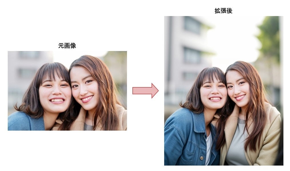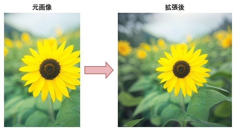 AI で写真や画像の周りの見えない範囲を AI が生成して、画像サイズを拡張できる機能です。