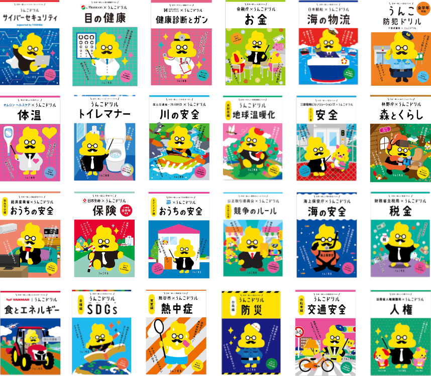 「うんこ啓発ドリル」は、冊子をはじめアプリ、動画といったコンテンツで、官公庁をはじめさまざまな企業などとコラボレーションし、防犯や防災、交通安全といった命にかかわるテーマから、お金や税金、SDGsといったより豊かに生きていく知恵までが学習できます。「うんこ啓発ドリル」はプロジェクト開始から2年で累計500万部を突破。今後も様々なコラボレーションが予定されています。