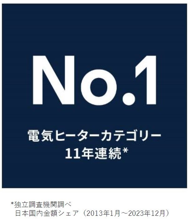 ※3 電気ヒーターカテゴリー:独立調査機関調べ 日本国内金額シェア(2013年1月~2023年12月)オイルヒーターカテゴリー:独立調査機関調べ 日本国内数量・金額シェア(2004年1月~2023年12月)